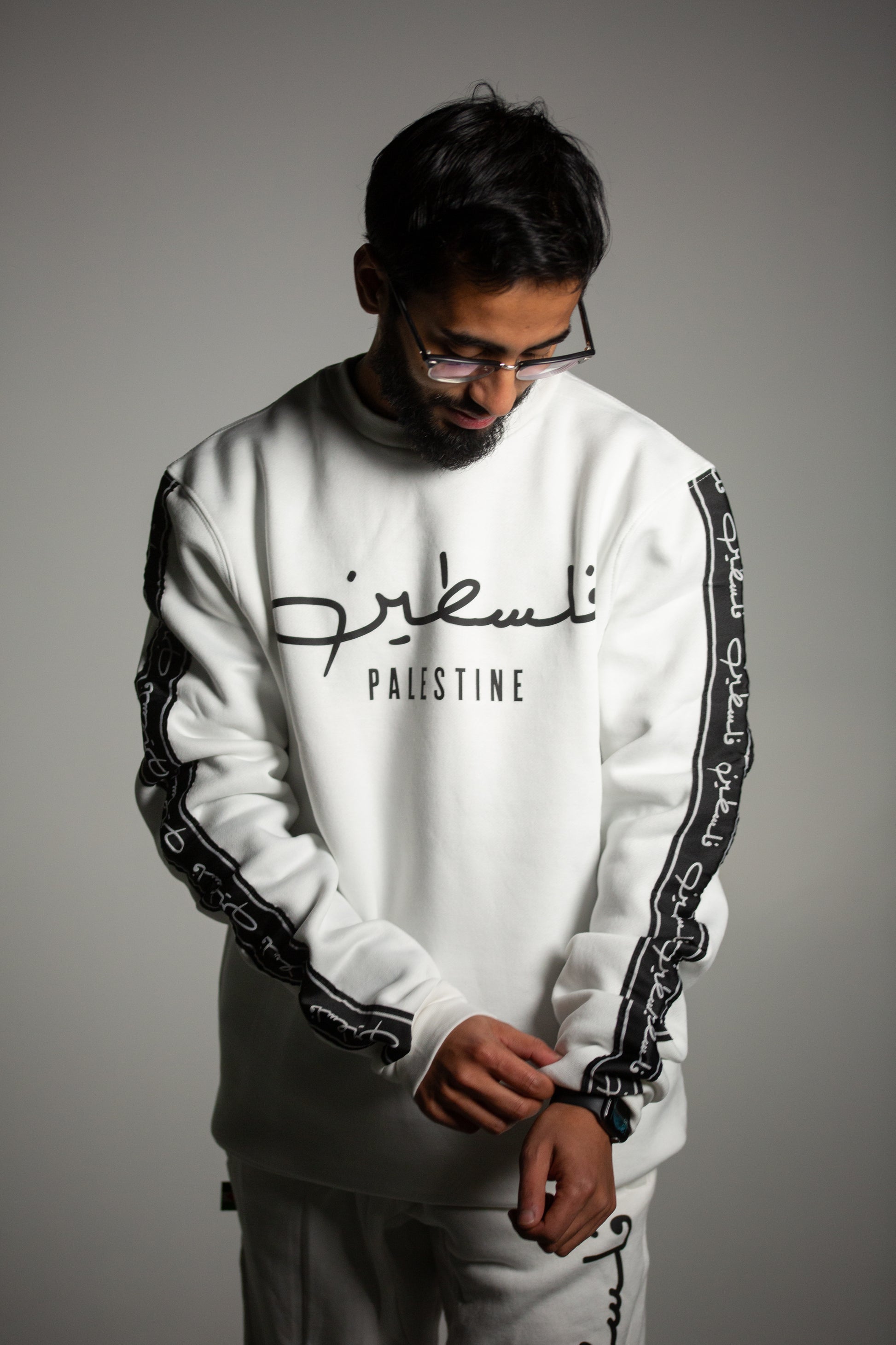 Stay comfy and show your support with our Holy Land crewneck featuring "Palestine" written in Arabic and English. Available in black, white, and charcoal, this crewneck is a stylish way to stand in solidarity.